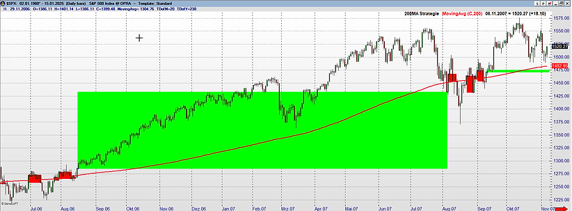 Eine weitere interessante Strategie, die ich getestet habe, ist die sogenannte „Steigende 200-Tages-Linie Strategie“: